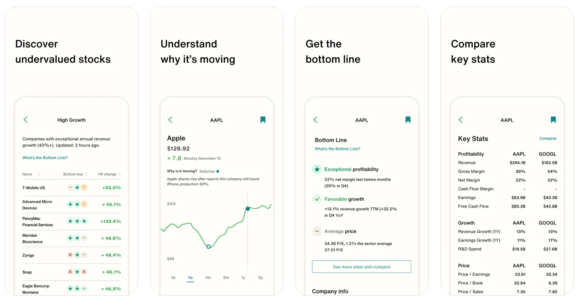 But we did a few things right. We recognized there was a clear under-served market for stock market research. We committed to value investing and efficient design as what we stood for. And we got great feedback from users raving about the product, with organic 4.7 / 5 rating from 100+ app store reviews.