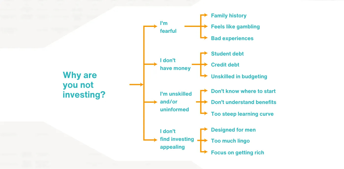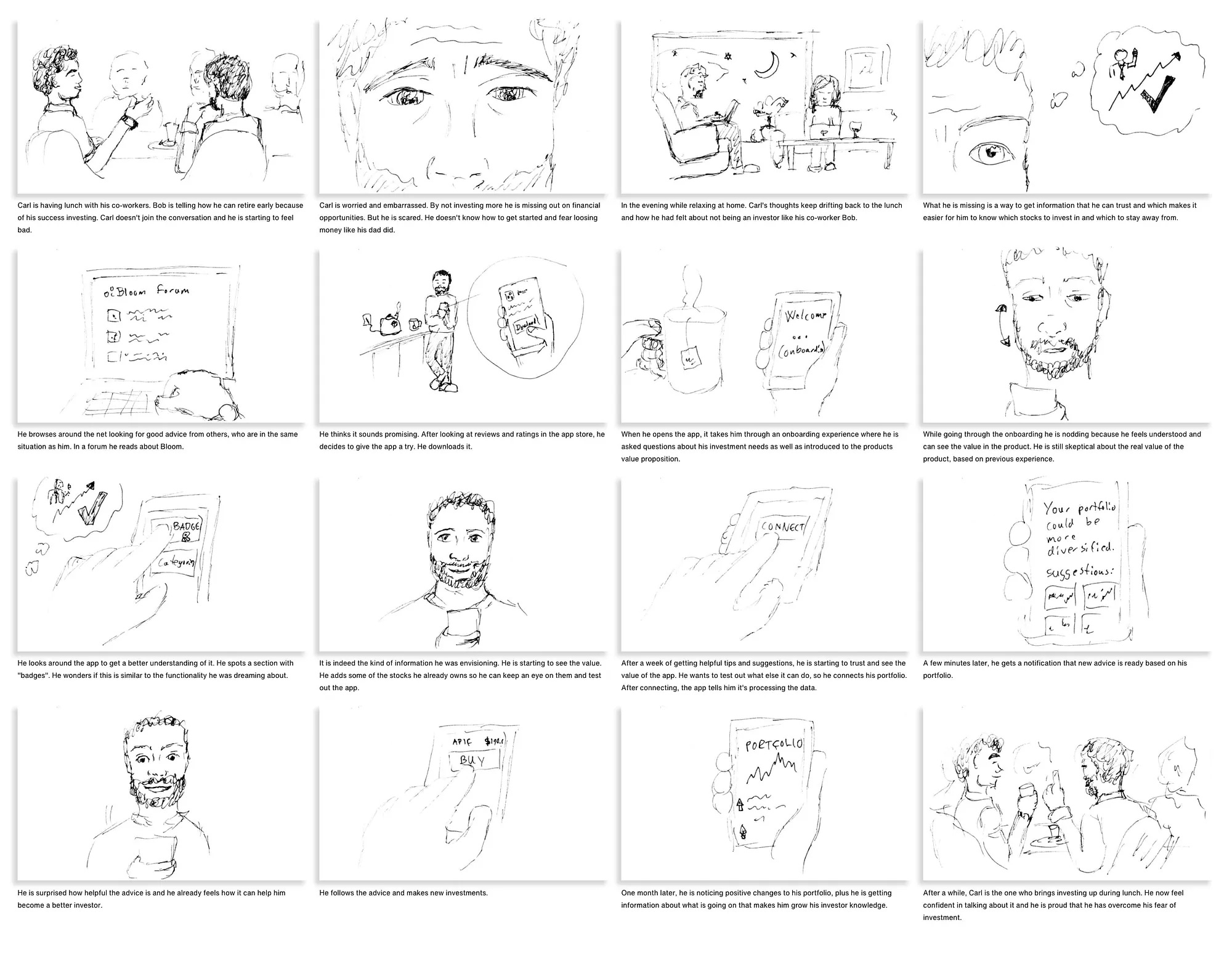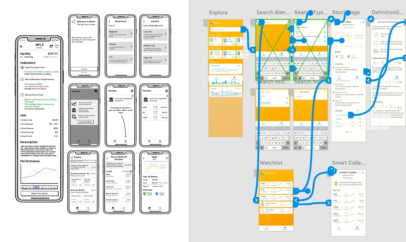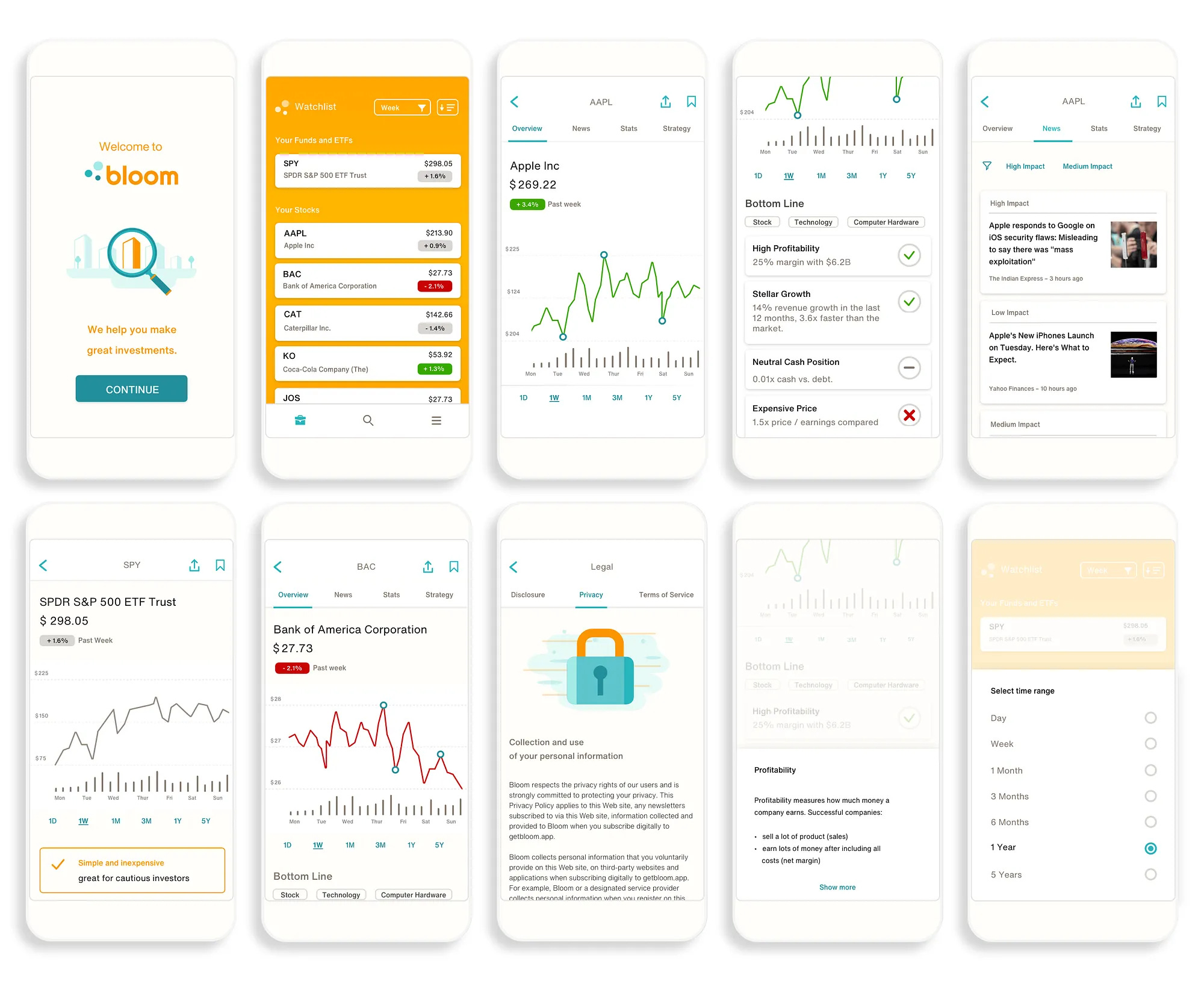 In the late 2010s, new investors were on the rise, influenced by platforms like Robinhood and Wall Street Bets. As a new earner, I faced the challenge of investing wisely. Realizing the lack of simple, educational tools in investing, we developed Bloom to help people invest with confidence. Our team includes Maria Hagsten (designer) and Calvin Woo (engineer). Today, they are working on becomeunstuck.app, a CBT journal for overcoming anxiety.